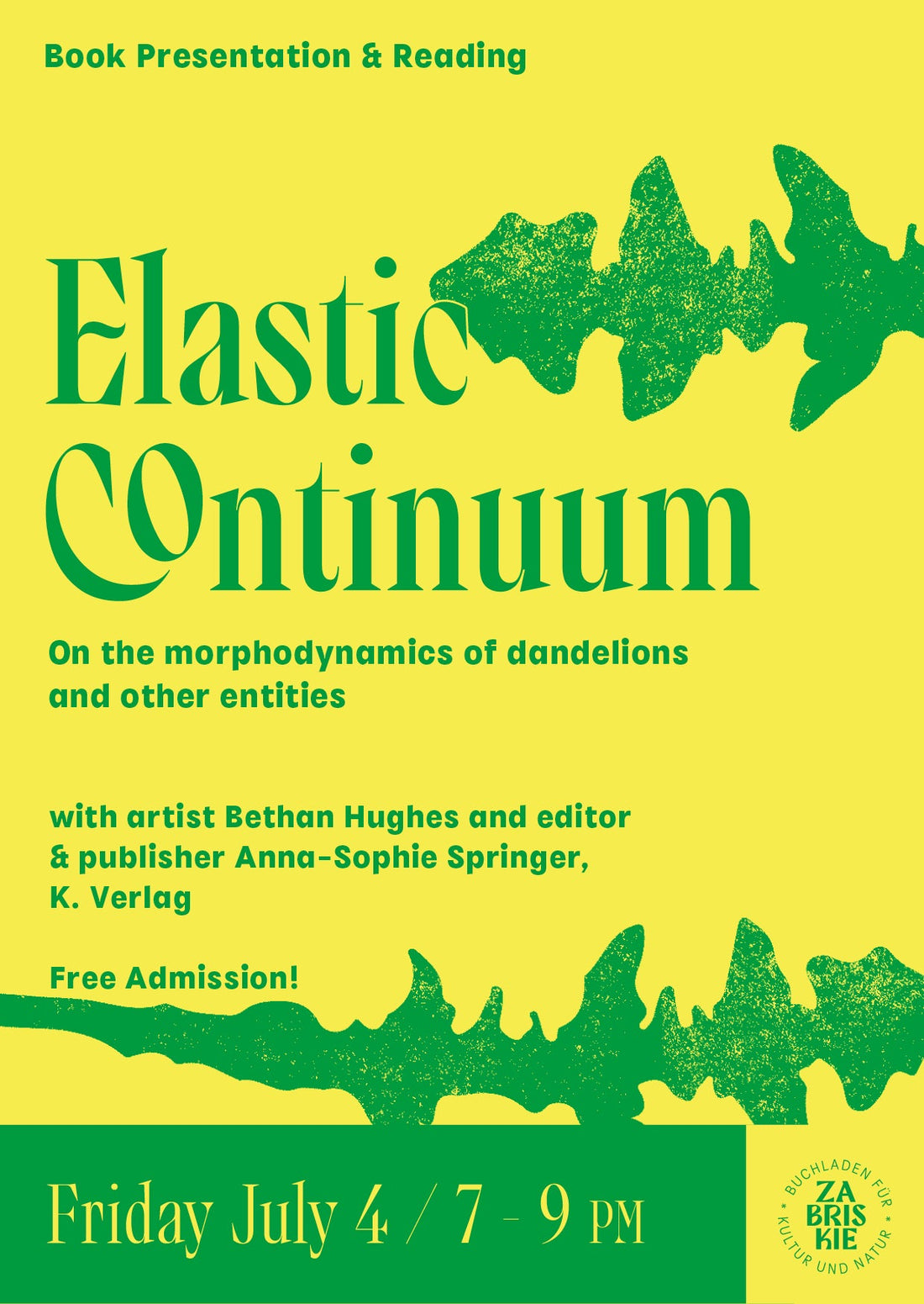 Join us for an evening with artist Bethan Hughes, who will present her new publication together with editor and publisher Anna-Sophie Springer Elastic Continuum released this spring in K. Verlag’s Processing Process series.