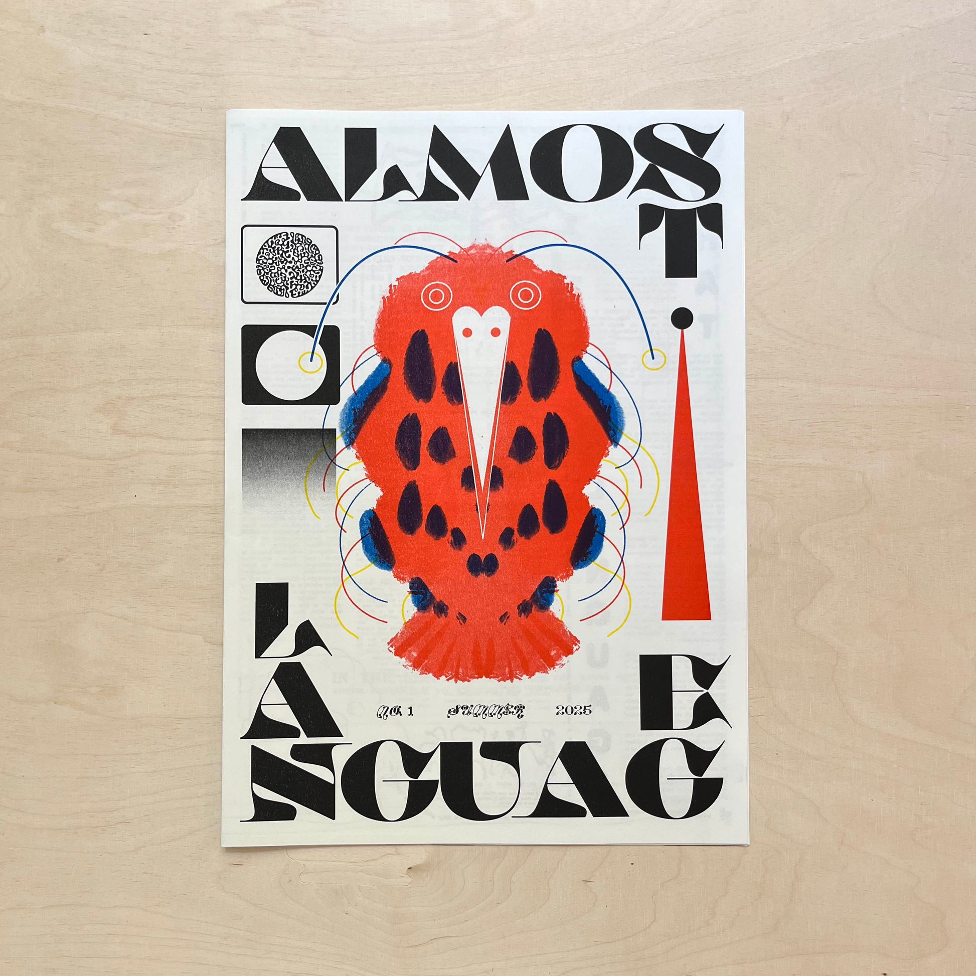 Almost Language No. 1 is twelve large-format, risograph-printed pages of found and original image and text. Each spread is an adventure in design and interpretation — you are invited to jump into the kool-aid, swim around, and explore it at your leisure, lifting up rocks and peering behind curtains to discover what hidden delicacies lie waiting. An encounter with Almost Language is inevitably an encounter with a variety of creatures, personalities, sensibilities, and "the continual discovery of fresh types of nonsense." Learn to read your future in the yolk of an egg, get relationship advice from a snail, and augment your verbal repertoire with the poetic phrases of wood-workers' jargon.