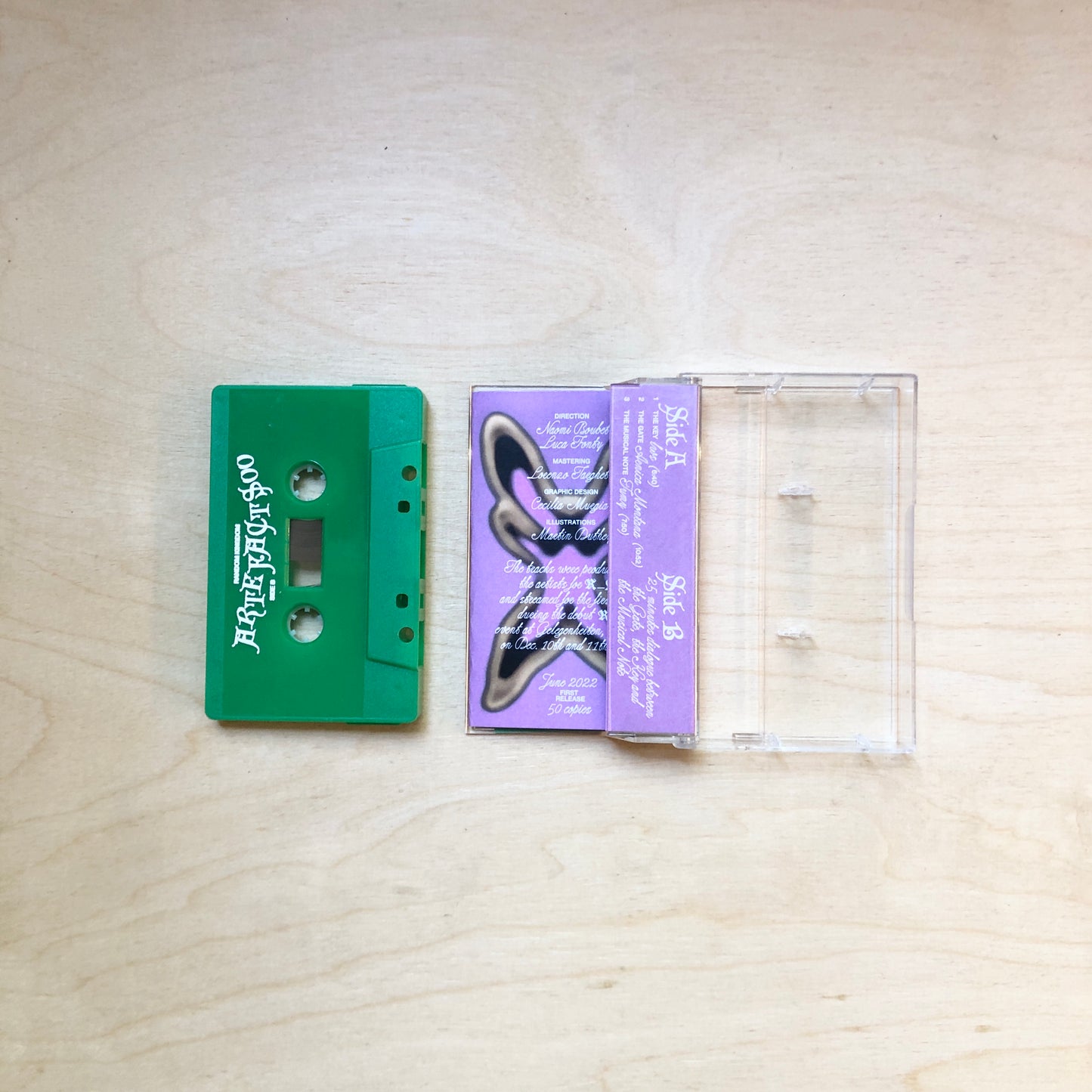The music is composed by sound artists Arnica Montana (Nice, FR), Tumy (Nice, FR), and Liniae (Berlin, DE). On the flip side of the tape, the retranscription of an installation, presented at an exhibition in Berlin, DE in 2021, is envisioned by artist Naomi Cassim (Berlin, DE) and woven by Luca Fonty (Paris, FR). A sound artist skillfully blends the three pieces together on side B, symbolizing the convergence of these three singular items.