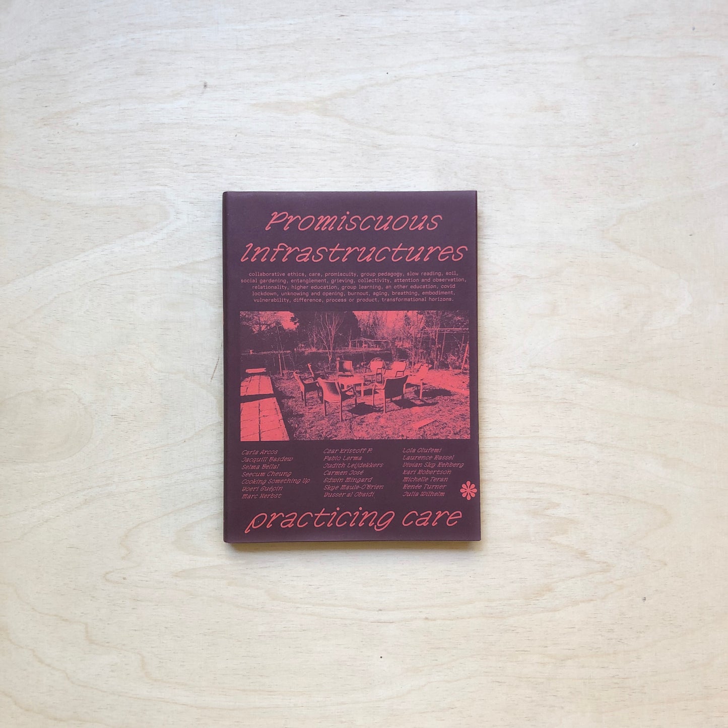 Promiscuous Infrastructures brings together more than twenty contributors—art and social practitioners, researchers, and educators—who have been researching and writing about caring infrastructures and promiscuous care for the past several years. This interdisciplinary publication comprises essays, visual schematics and scores, personal letters, recipes, and conversations, which emerge from the work of the Promiscuous Care Study Group, situated around the Willem de Kooning Academy in Rotterdam.