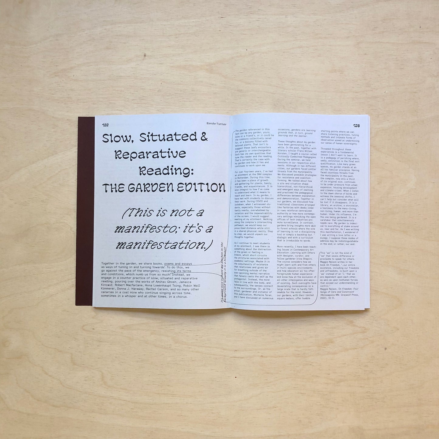 Promiscuous Infrastructures calls for an ethics of care and attentiveness to one another within and beyond the shared context of a structurally dispassionate institution that requires innovation, expediency, and accountable results. The promiscuity it explores is defined by a collective refusal of efficiency, and favors generosity, care, love, and attention. Together, the group and their interlocutors address themes ranging from institutional change, communal responsibility and accountability practices, mental health and collective care, hospitality and hosting, soil, counter-histories, intergenerational learning, joy and collective grief and the poetics of imagining otherwise.