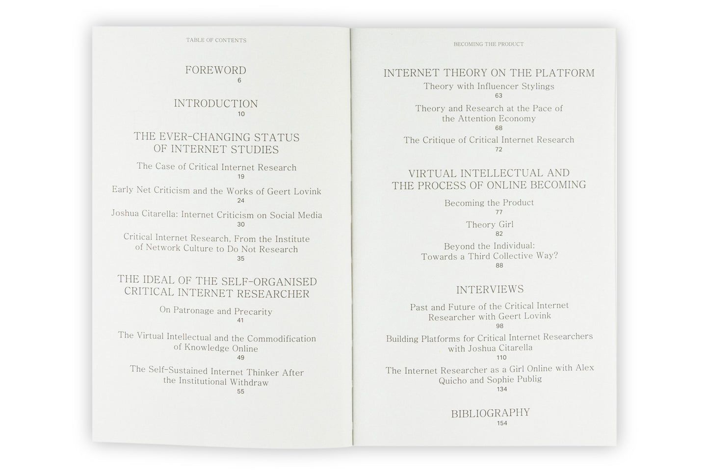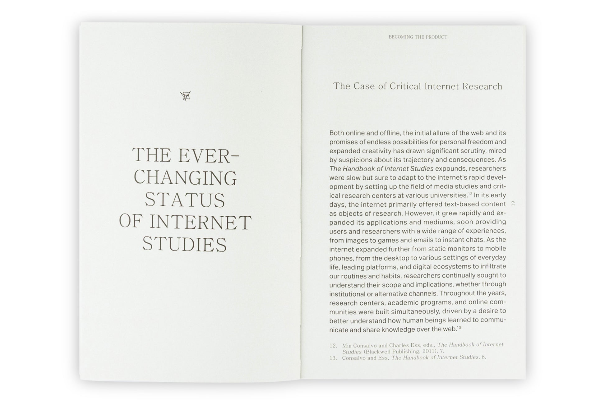 Charting the rise of subscription-based platforms and the increasing importance of engagement-driven metrics, Becoming the Product uncovers the tension between intellectual critique and the pressures of commodification. As the lines blur between rigorous scholarship, aesthetic branding, and market-driven content, Becoming the Product investigates the future of critical internet research and the sustainability of critical thinking as we know it in the digital age.