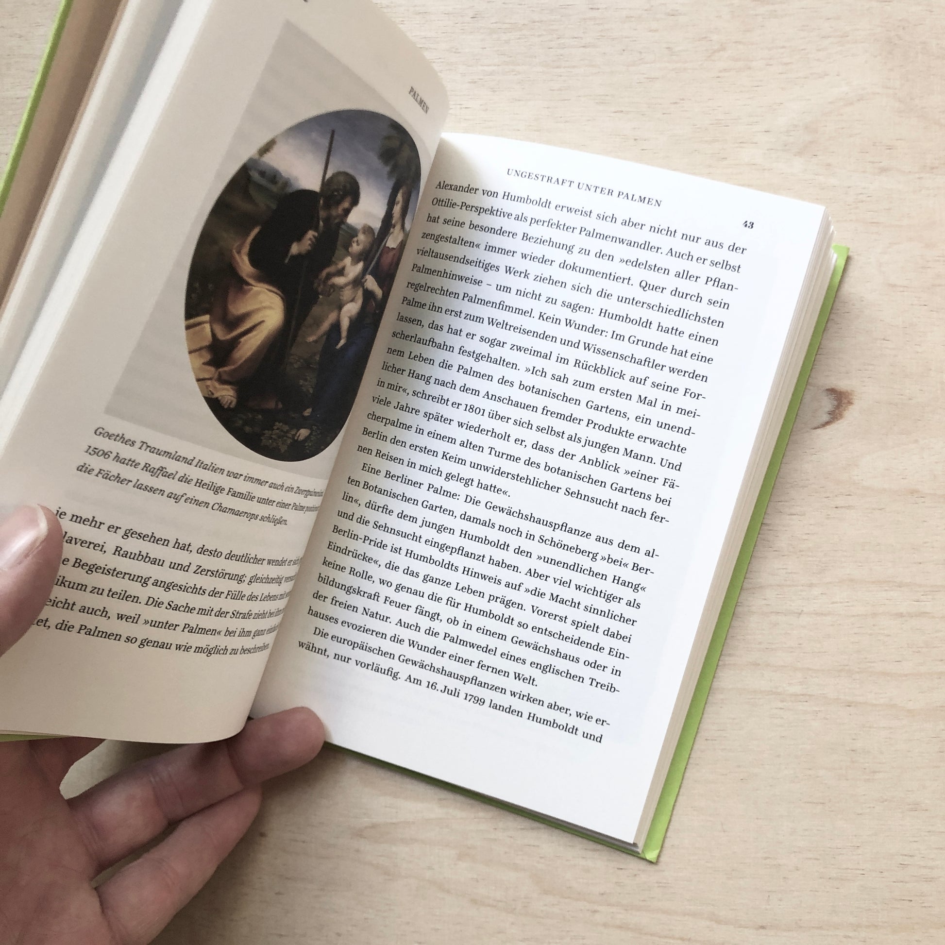 Meist wachsen sie dort, wo man gerade nicht ist, aber gern wäre. Manchmal allerdings stehen sie einem direkt vor der Nase – in Vorgärten, Fußgängerzonen, Treibhäusern oder Botanischen Gärten –, wo sie unweigerlich die Frage aufwerfen: Wie wurde dieses faszinierende Gewächs zur allgemeinen Sehnsuchtspflanze? Am Anfang, so viel ist sicher, war die Dattelpalme. Mit ihrer Kultivierung wurden Menschen sesshaft, mit ihren Palmwedeln deckten sie Dächer und huldigten Göttern. Seither beschatten Palmen sowohl Träume vom Süden als auch Utopien einer besseren Welt: Goethe erwählt eine italienische Fächerpalme zu seinem Fetisch, der Kokos-Guru August Engelhardt begründet in Deutsch-Neuguinea seine Palmenreligion, während Produkte wie Palmin den westlichen Wohlstand zu schmieren beginnen. Palmen waren und sind nicht nur Sehnsuchts-, sondern auch Kolonialpflanzen und bedrohen in monokulturellen Plantagen ausgerechnet jenen Traum einer paradiesischen Natur, für die sie mit bezaubernd-ikonischer Eleganz stehen.