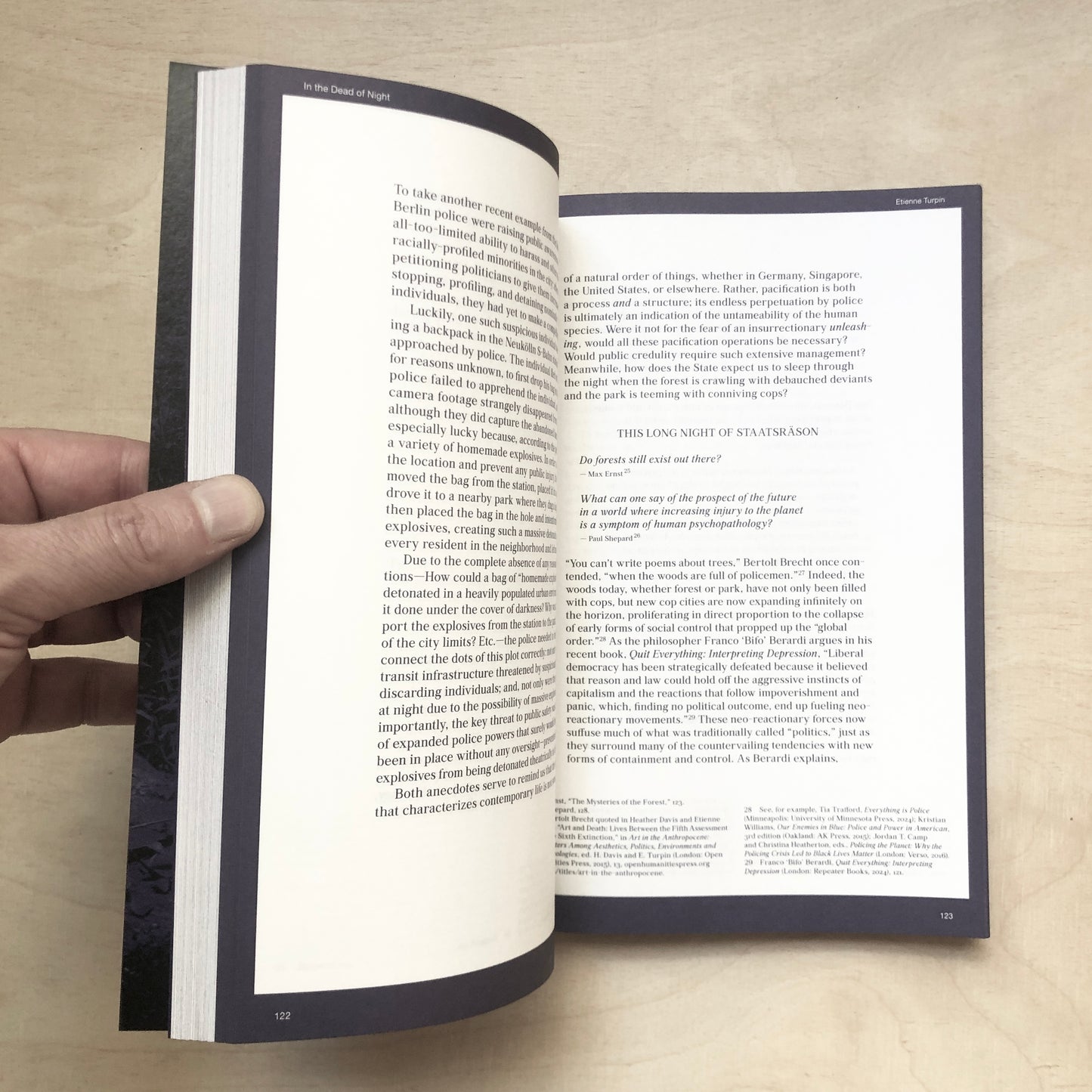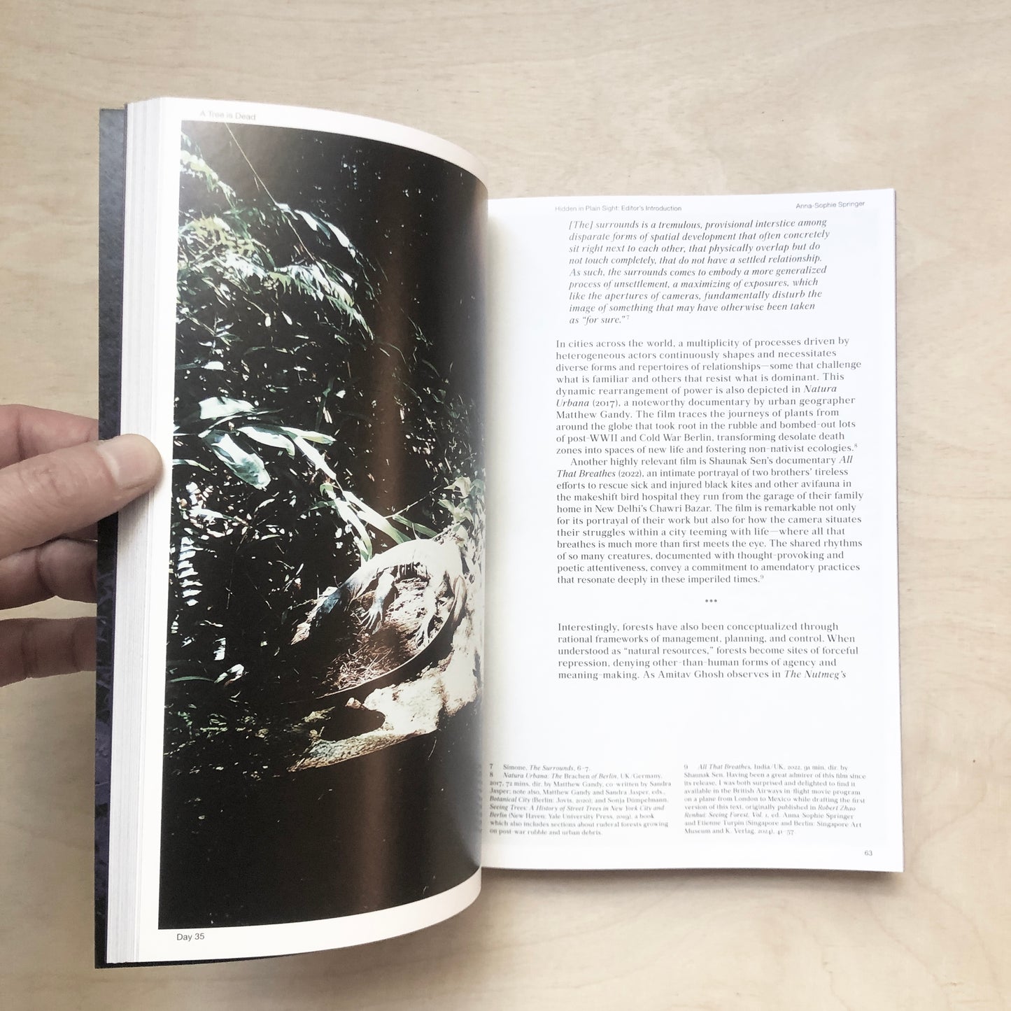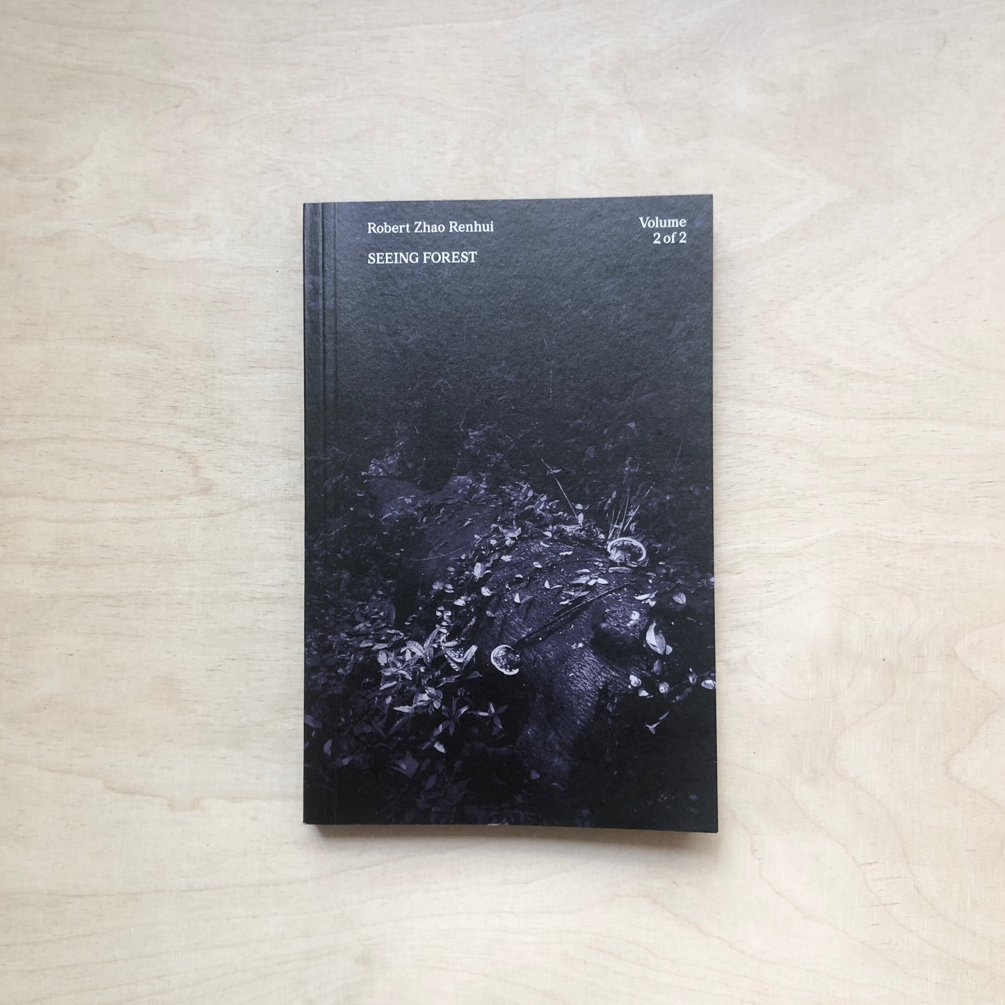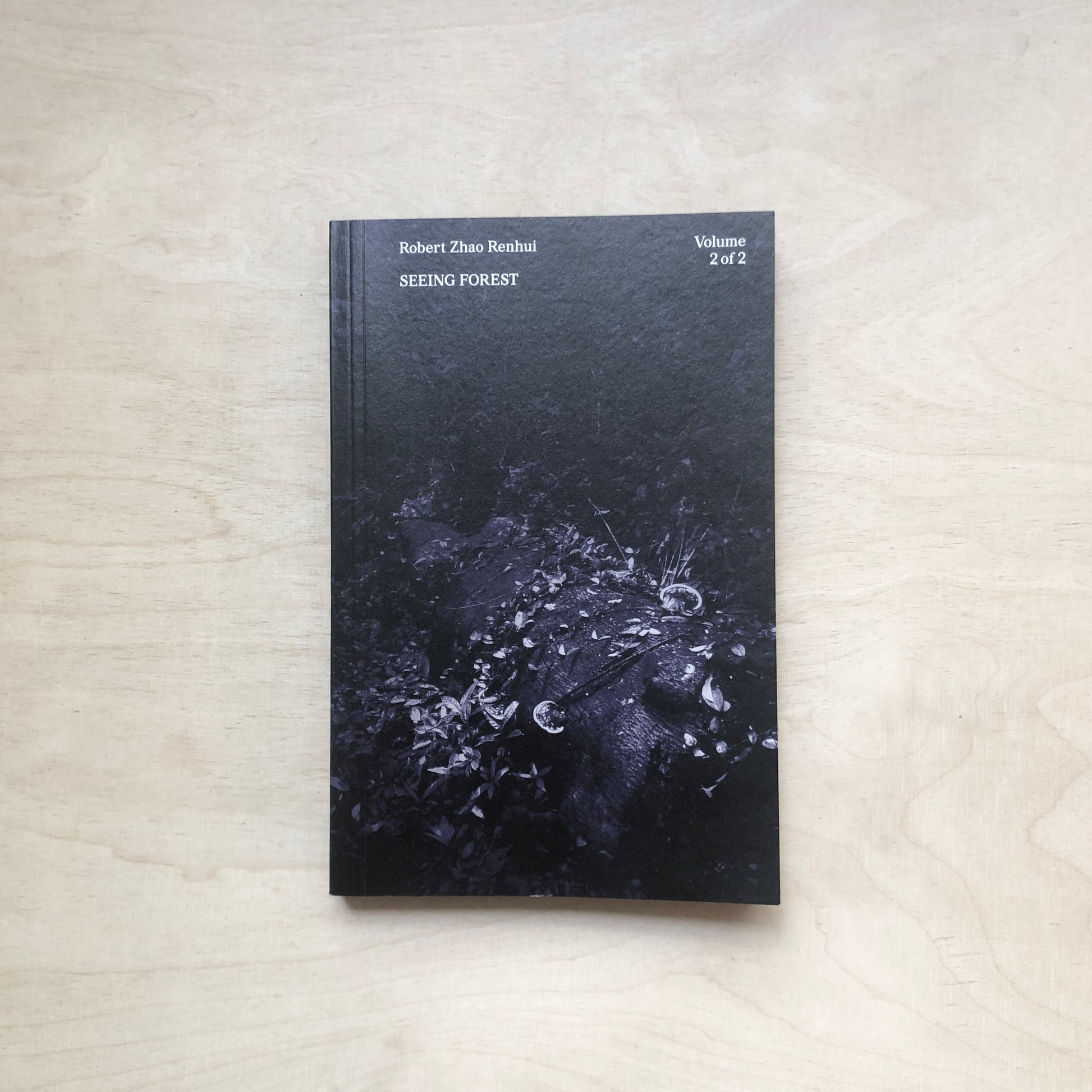 Robert Zhao Renhui: Seeing Forest, Volume 2 of 2. Edited by Anna-Sophie Springer & Etienne Turpin. With artwork by Robert Zhao Renhui and contributions by Michaela Büsse, Roland Ennos, Cal Flyn, Maja & Reuben Fowkes, Mick Hennessy, Haeju Kim, Boaz Levin, Baptiste Morizot, Kang Min Ngo, Anna-Sophie Springer, Etienne Turpin, Maya West, and Ying Zhou. Design by K. Verlag with Wolfgang Hückel & Katharina Tauer.