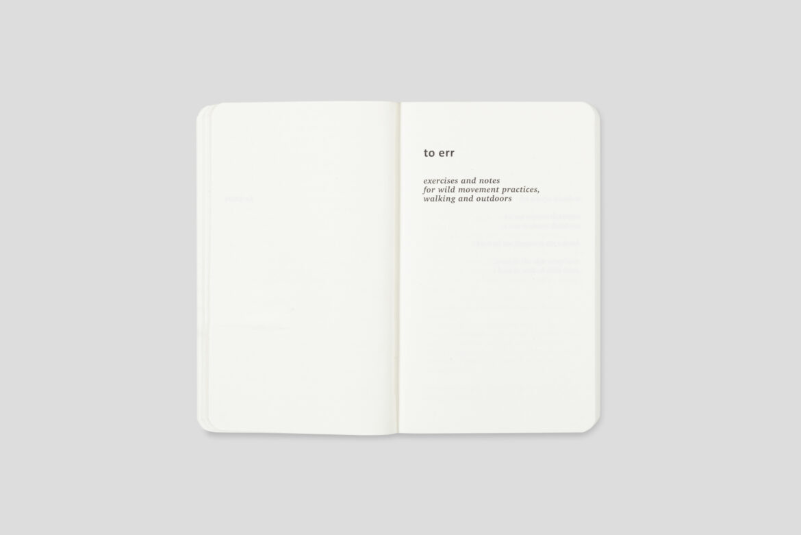 to err gathers walking exercises and notes, created as instruments for choreographic composition, but practicable by anyone, to put one’s perspective about self and what is other to self, as well as the relations between things, even beyond the human, into question.